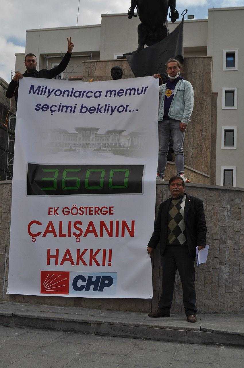 Hükümet Konağı önünde düzenlenen basın açıklamasında CHP İl Başkanı Kamil Gülmez, "Bugün Türkiye’nin her yerinde, iktidar tarafından 24 Haziran seçimleri öncesinde söz verilen ancak bugüne kadar hiçbir bir adım atılmayan bir vaadi, bir sözü, gerçekleştirilmeyen bir müjdeyi dile getirmek için toplandık. Bugün ülkenin her yerinde 3600 Ek Gösterge hakkı için yıllardır bekleyen, milyonlarca memurumuzun sesi olmak için buradayız.