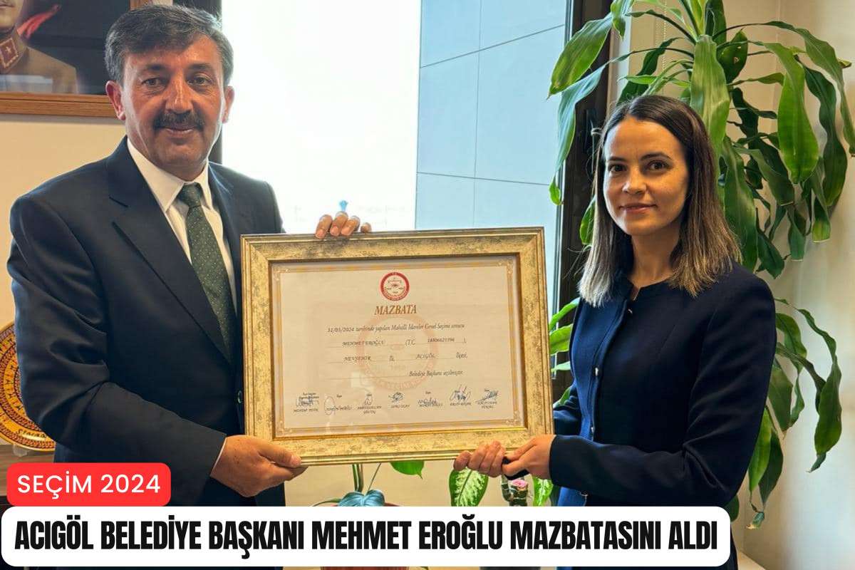 31 Mart Pazar günü yapılan mahalli idareler seçimlerinde Acıgöl Belediye Başkanı seçilen MHP Belediye Başkan Adayı Mehmet Eroğlu bugün İlçe Seçim Kurulu’ndan mazbatasını alarak görevine resmen başladı. Acıgöl Belediye Başkanı Mehmet Eroğlu açıklamasında, “Allah’ım utandırmasın. Emeği geçen herkese teşekkür ederim” dedi.