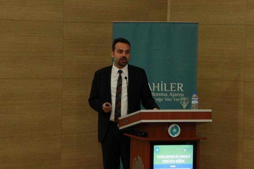 Şekeroğlu’nun ardından kürsüye gelen Ahiler Kalkınma Ajansı Genel Sekreter Vekili Bekir Varol ise sanayileşme ve kentleşme sürecinin yaygınlaşması, artan dünya nüfusu ve insanların tüketime dayalı bir yaşam seçmesiyle dünya kaynakları üzerindeki baskının artarak plansız bir enerji kullanımı oluştuğuna dikkat çekerek “Rekabetçi ekonomiye geçiş önemli çevresel sorunları beraberinde getirdi. Bugüne yansıyan ve hala çözülmeyi bekleyen küresel iklim değişikliği probleminin azaltılması için yapılması gereken ilk faaliyet sera gazlarının atmosferdeki yoğunluğunun azaltılmasıdır. Bunu başarmanın en önemli yolu ise fosil yakıtlar yerine yenilenebilir enerji kaynaklarının kullanılmasıdır” diye konuştu.