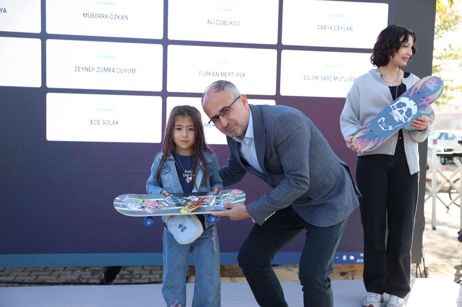 Başkan Arı’nın açılış konuşmaları sonrası 24 saat süren kaykay çekilişi için katılım sağlayan toplam 1226 tekil başvuru sayısıyla heyecan en üst seviyeye ulaştı. 50 adet olarak planlanan kaykay hediyesi çekilişi vatandaşların ve çocukların yoğun talepleri doğrultusunda Kaykay Federasyonu ve alanda