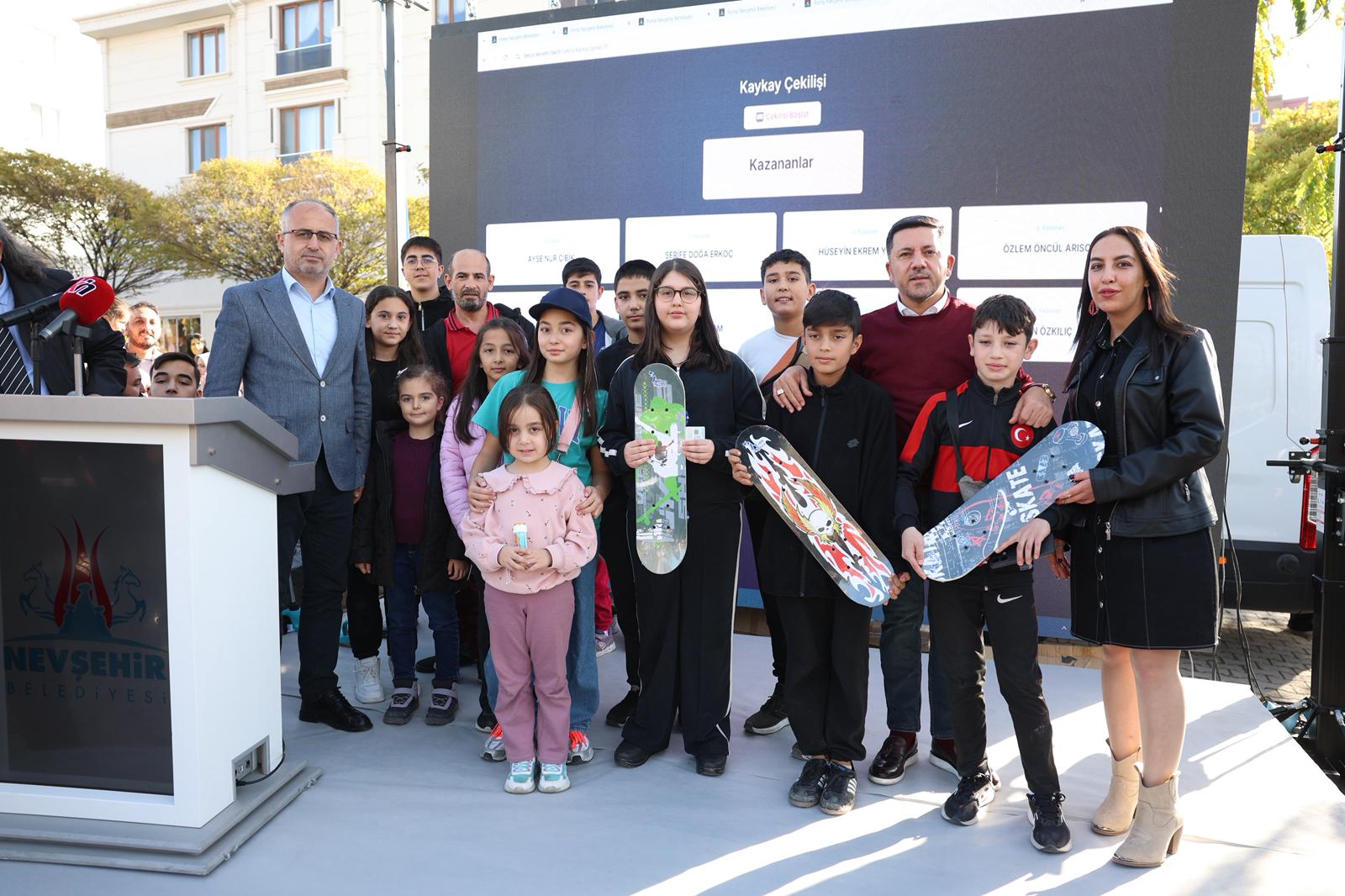 Toplam 207 adet kaykay talihlisinin çekilişle belirlenmesi sonrası Belediye Başkanı Arı, hiçbir çocuk üzülmesin diye çekilişte adı çıkmayan ve kaykay isteyen bütün çocuklara seslenerek Nevşehir Belediyesi Spor Kulübü’ne kayıt yaptırıp lisans çıkaran Nevşehirli bütün evlatlarımıza Kaykay Federasyonu’nun katkı ve destekleriyle kaykay ve koruma ekipmanı hediye edeceklerini belirtti.