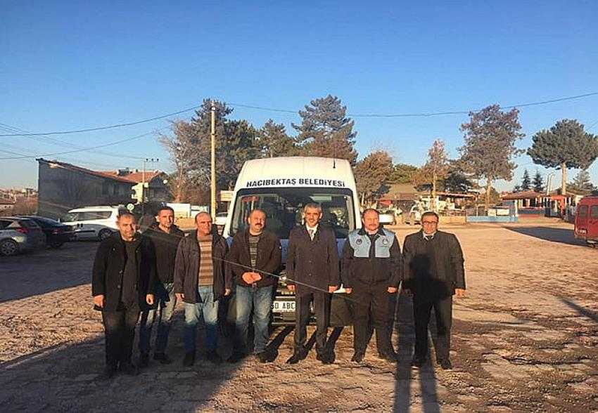 NEVŞEHİR(MHA) Hacıbektaş Belediye başkanı Arif Yoldaş Altıok, bir hayırsever tarafından belediyeye sıfır kilometre minibüs bağışı dolayısıyla oldukça mutlu.