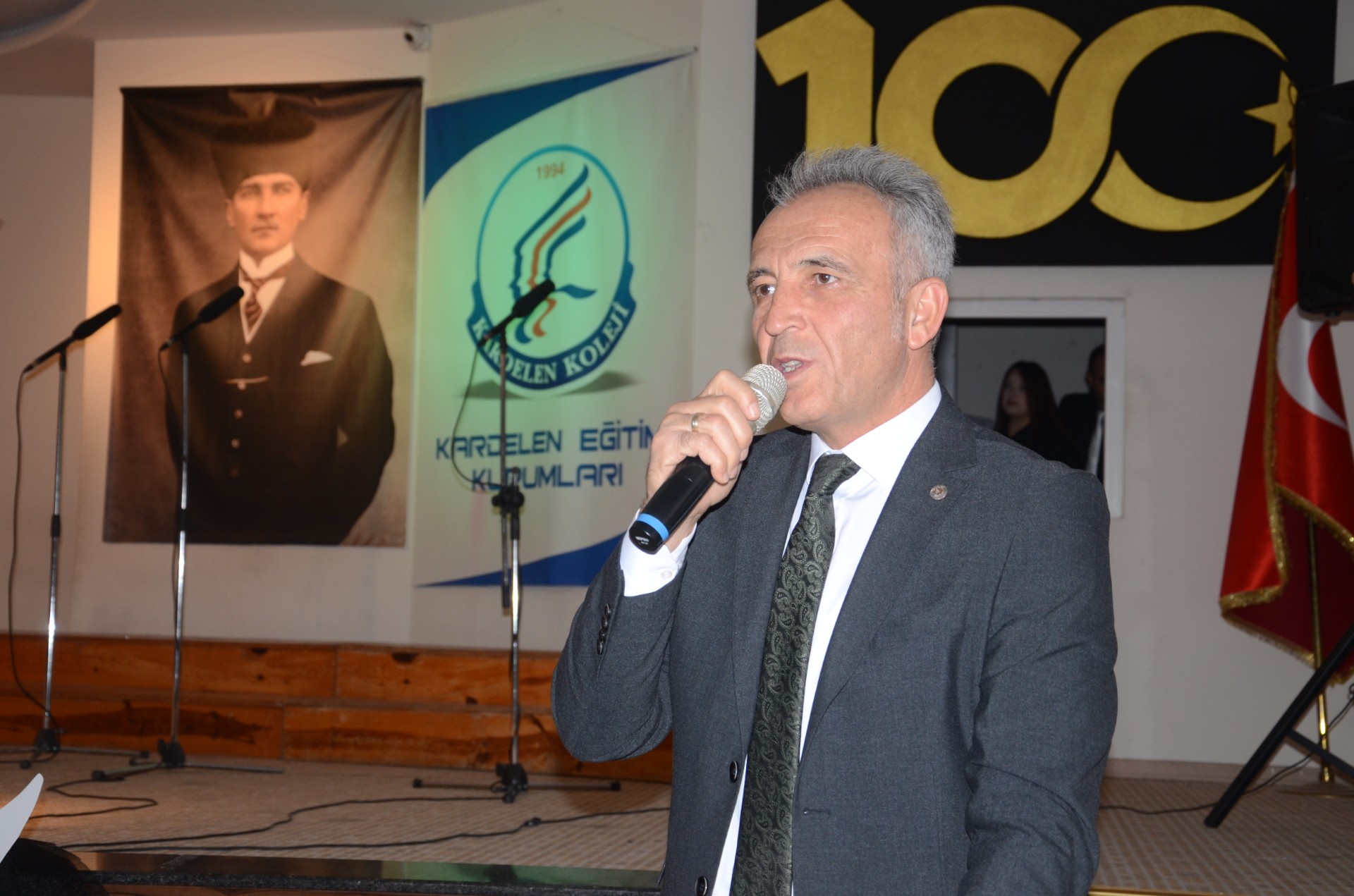 Saygı duruşu ve İstiklal Marşı ile başlayan programda konuşan, Kardelen Eğitim Kurumları İlköğretim Okulu Müdürü Burhan Kaynar, “Onsuz kasım, sonsuz kasım dedik ve o sonsuz kasımlar devam edecek.” dedi.