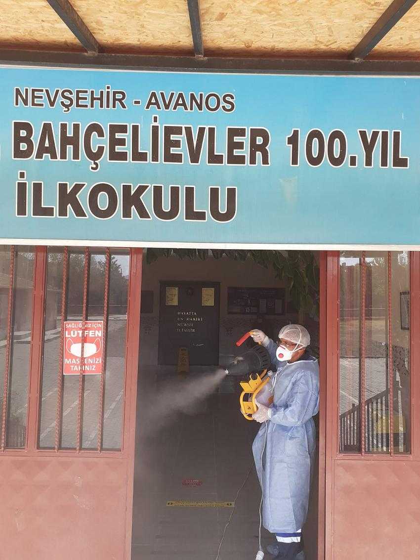 Avanos Belediyesi korona virüs salgını tedbirleri çerçevesindeki çalışmalarına ara vermeden devam ediyor. Anaokulları, ilkokullar, 8 ve 12’nci sınıflar için yüz yüze eğitimin başladığı okullarda dezenfeksiyon çalışması gerçekleştirdi. Belediyenin Temizlik ve Çevre Koruma Müdürlüğü’ne bağlı Özel kıyafetli ilaçlama ekibi tarafından yapılan dezenfeksiyon çalışmalarında öğrencilerin temasta bulunacağı her nokta en ince ayrıntısına kadar temizleniyor.