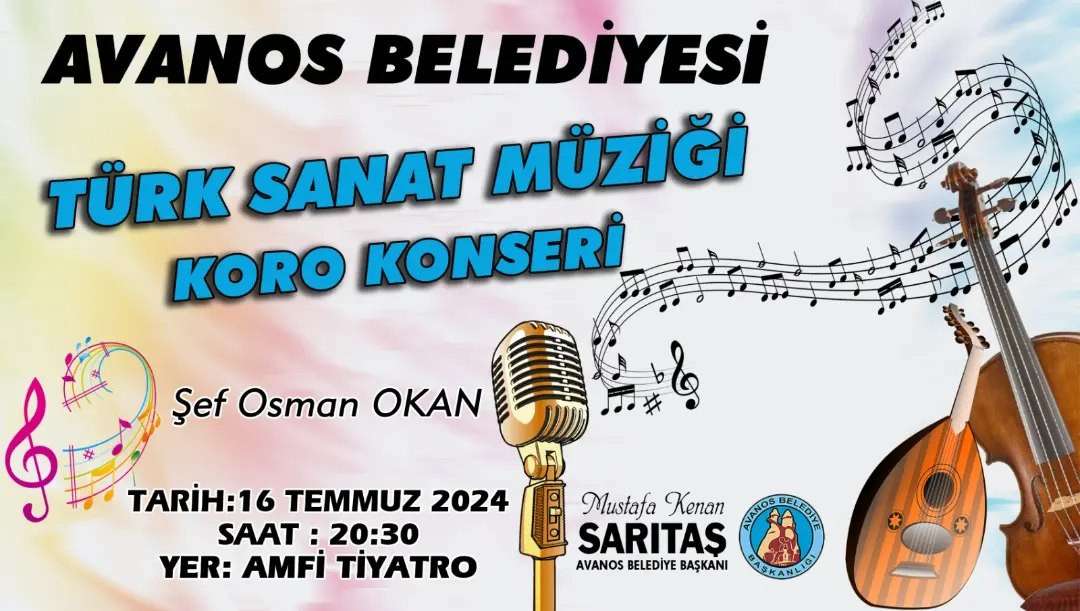 Avanos Belediyesi tarafından 16 Temmuz Salı günü Amatör Türk Sanat Müziği korosu tarafından konser düzenlenecek.