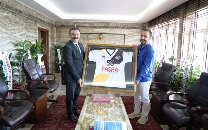 NEVŞEHİR(MHA) Pasha Balloon yönetim kurulu başkanı Halis Aydoğan, Ürgüp İlçe kaymakamı Cüneyt Caner' i makamında ziyaret ederek, Ürgüp spor voleybol takım formasını hediye etti. Ziyaret esnasında Aydoğan'a TFF İl Temsilcisi M. Tolga Karaca'da eşlik etti.