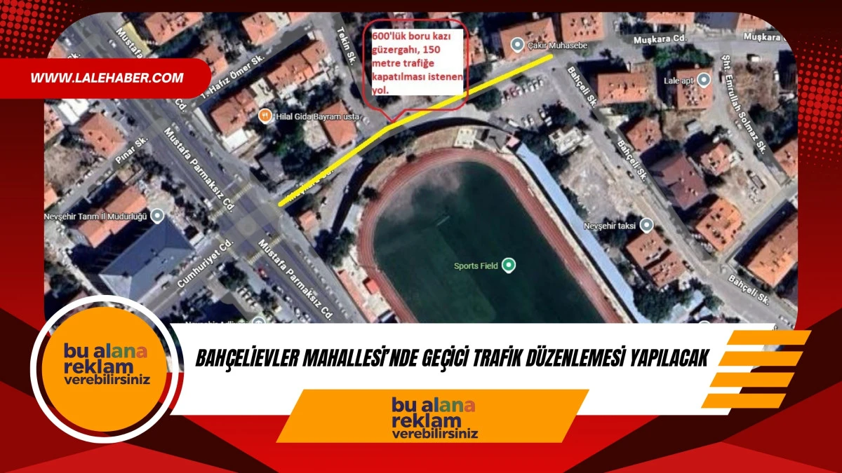 Gerçekleştirilecek altyapı çalışmaları kapsamında ilimiz Nevşehir Merkez Bahçelievler Mahallesi sınırları içerisinde bulunan Muşkara Caddesi ile Bahçeli Sokak 14.01.2025 tarihinden itibaren 15 (on beş) gün süreyle araç trafiğine kapatılacak.