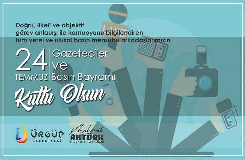 Ürgüp Belediye Başkanı Mehmet Aktürk 'ten 24 Temmuz Gazeteciler ve Basın Bayramı nedeniyle bir mesaj yayımladı.