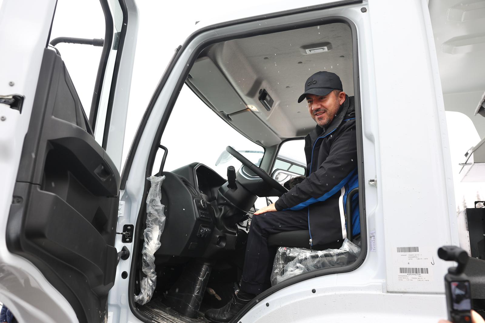 Başkan Arı, kar küreme aracını sürerek temizlik çalışması yaptı