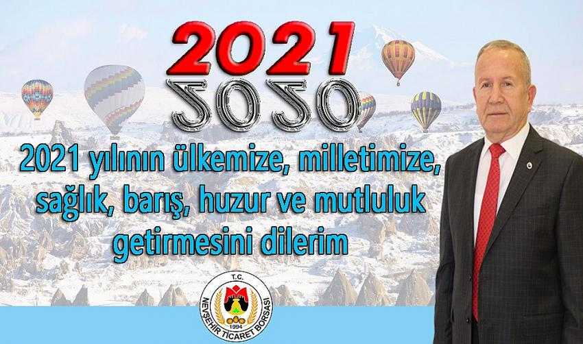 Başkan Salaş; ''Bu duygu ve düşüncelerle 2021 yılının ülkemize, ilimize, milletimize, tüm insanlığa ve üyelerimize sağlık, barış, huzur, mutluluk getirmesini, daha güzel yarınların başlangıcı olmasını temenni ediyorum. Sevgi, barış ve hoşgörüsü ile dünya' ya örnek olan ilimizde, yeni umutları beraberinde getiren bir yeni yılı daha sizlerle birlikte karşılamaktan mutluluk duyuyorum. Bu duygu ve düşüncelerle tüm Borsamız üyeleri ile Nevşehirli tüm vatandaşlarımızın yeni yılını en içten dileklerimle kutlarım." diye konuştu.