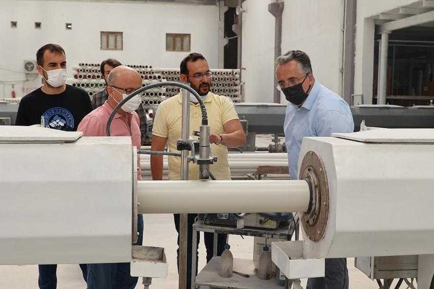 Savran, son olarak beraberinde Nevşehir Ticaret ve Sanayi Odası (NTSO) Meclis Başkanı Seyit İnce ile birlikte kuyu sondaj ve pvc temiz su boruları imalatı gerçekleştiren Presmak ve geri dönüşüm malzemelerinden tarım sulama boruları üreten Kadıoğlu Plastik firmalarını ziyaret etti.