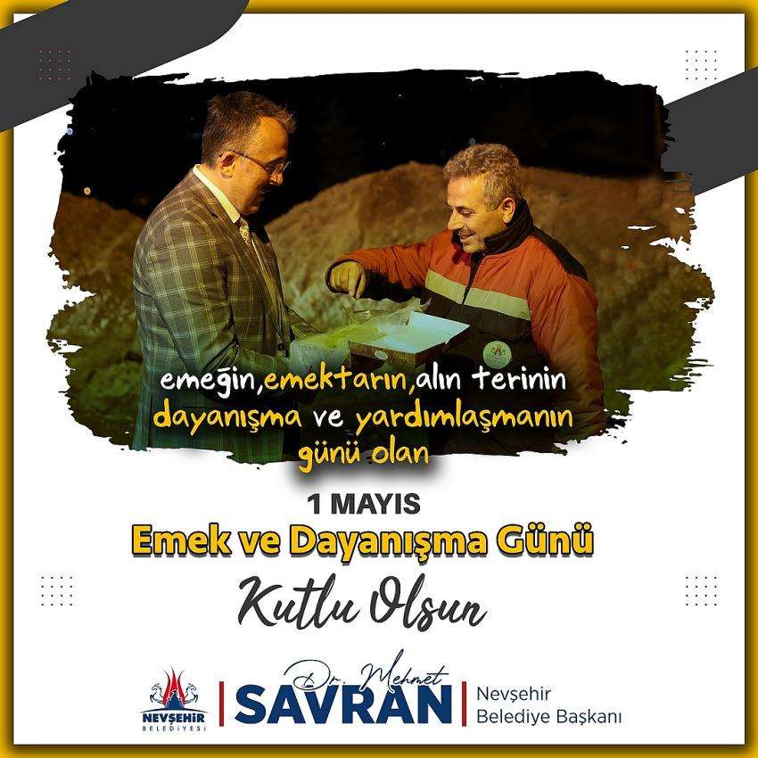 Nevşehir Belediye Başkanı Dr. Mehmet Savran, “Her geçen gün gelişmekte olan şehrimizin ve ülkemizin büyümesi, ilerlemesi ve hedeflerine ulaşmasında, emek ve alın terleriyle önemli pay sahibi olan işçi ve emekçi kardeşlerimizin, 1 Mayıs Emek ve Dayanışma Günü’nü tebrik ediyorum” dedi.