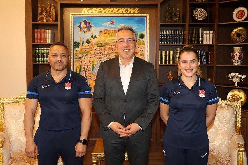 Nevşehir Belediye Başkanı Dr. Mehmet Savran, 2020 Tokyo Olimpiyat Oyunları’nda ülkemizi temsil eden ve geçtiğimiz hafta Türkiye Şampiyonluğu kazanan milli boksör Esra Yıldız ve Antrenörü Nedim Baba’yı tebrik etti.