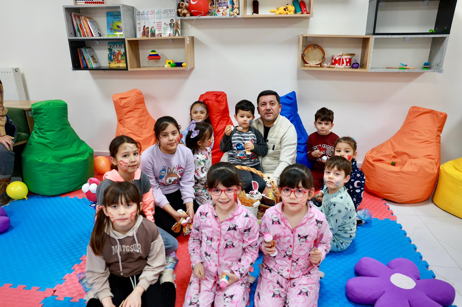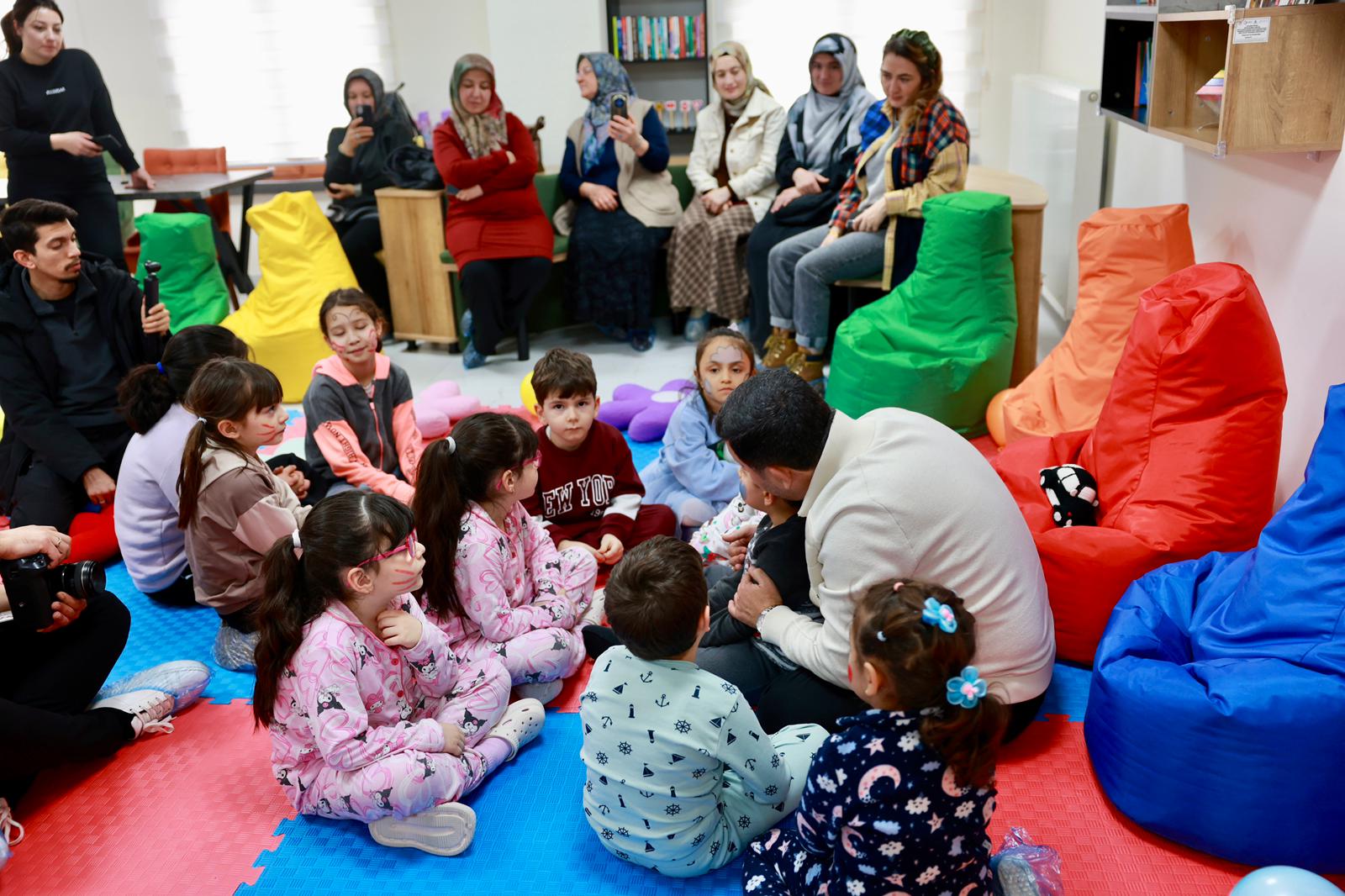 Sıcak ve samimi bir atmosferde düzenlenen etkinlikte, masalı Belediye Başkanı Rasim Arı bizzat anlatarak çocuklarla keyifli anlar yaşattı. Pijama temasıyla hazırlanan atölye, çocukların kendilerini rahat ve güvende hissetmelerini sağlarken, masal dünyasının büyülü kapıları aralandı. Masal anlatımı sırasında çocuklar hayal güçlerini kullanarak hikâyeye dahil olurken, dikkat ve dinleme becerilerini geliştirme fırsatı buldu.