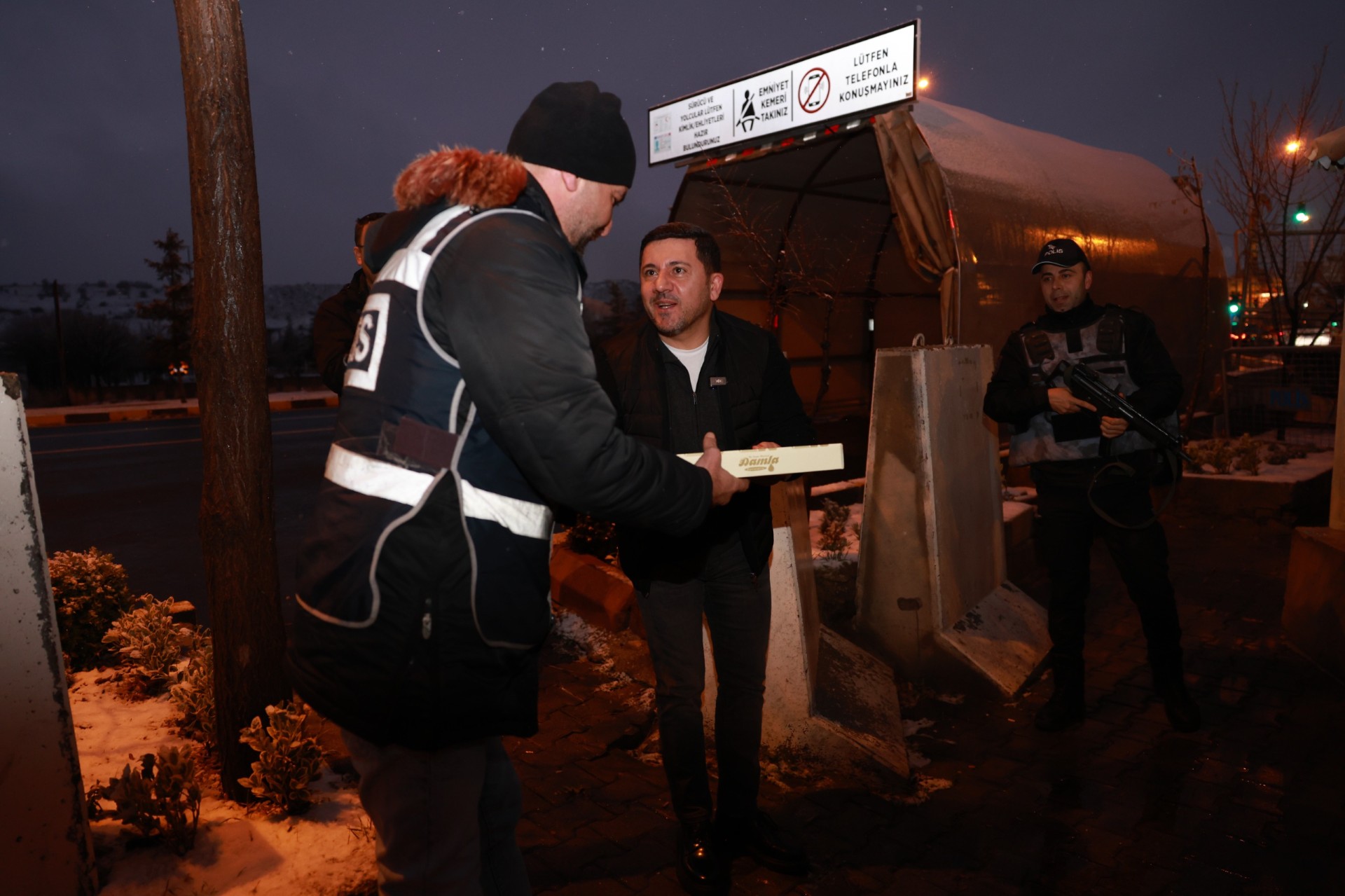 Türkiye ve Nevşehir 2026’ya girmeye hazırlanırken yeni yıl akşamı görev yapan görevliler unutulmadı. Başkan Arı, yılbaşında görev yapan polis, jandarma, sağlık ve belediye personeli ile esnafları ziyaret ederek baklava ikram etti.