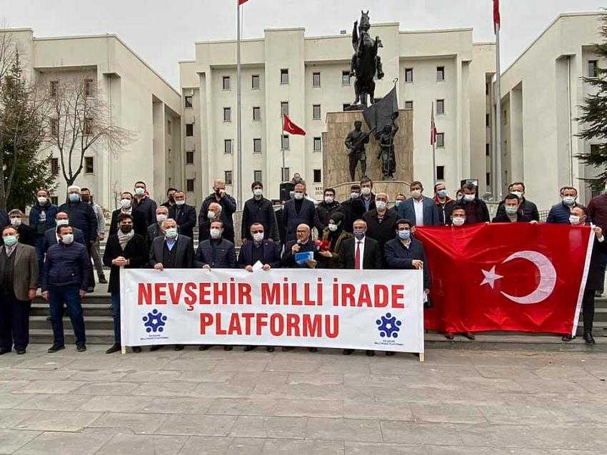 Nevşehir Milli İrade Platformu, 104 emekli amiralin yayınladığı bildiriyi kınarken, "Herkes haddini bilmeli, haddini bilmeyenlere de gereken ne varsa hukuk içerisinde yapılmalıdır" ifadelerinde bulundu.
