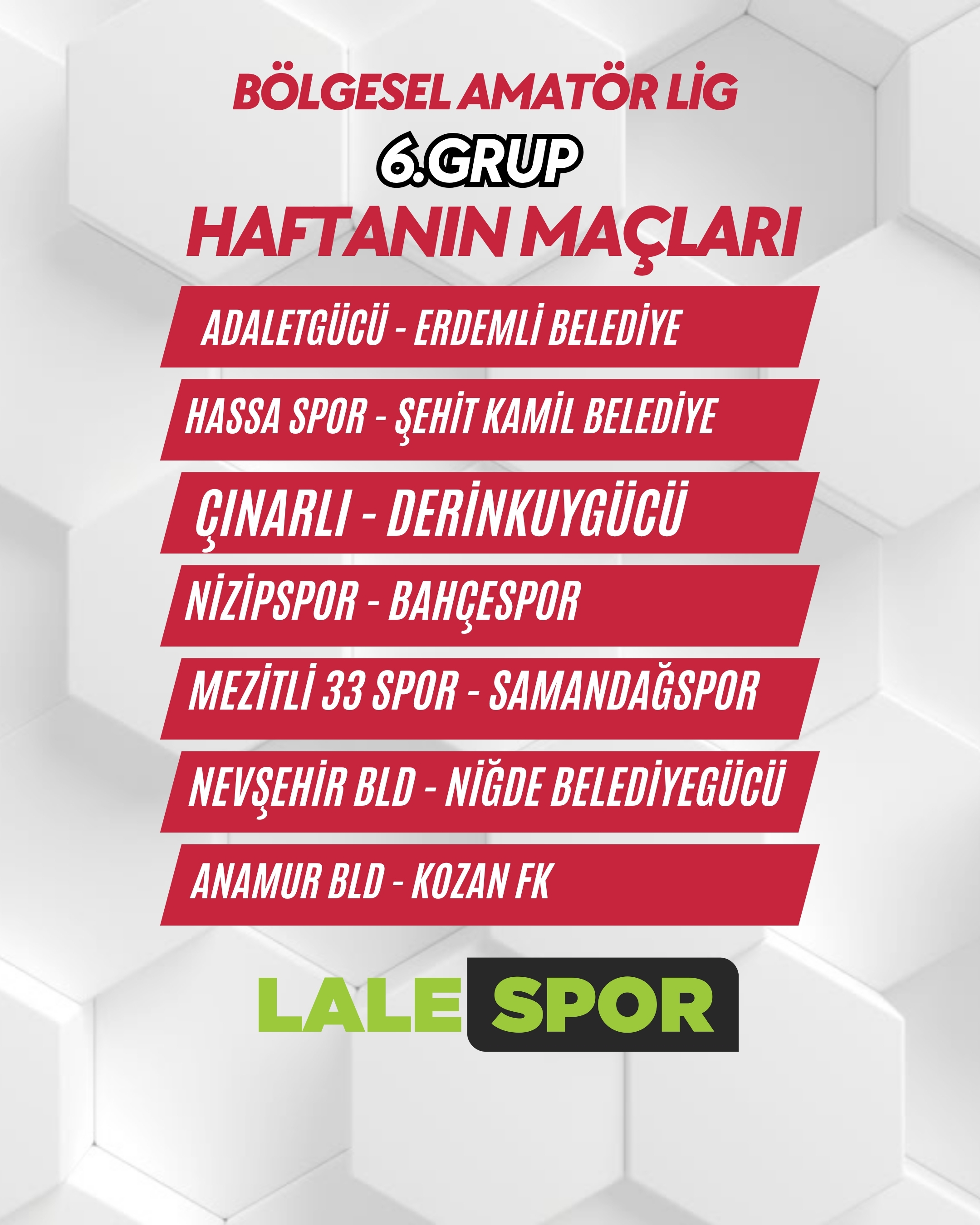 Bölgesel Amatör Lig 6.Grupta haftanın maçları