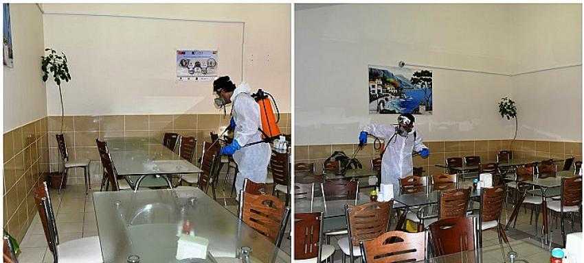 Ayrıca; Başta korona virüsü olmak üzere solunum yoluyla bulaşan tüm hastalıkların bulaşıcılığının önlenmesine yönelik tedbirler alınmasının önem arz ettiği, Hükümlü/tutuklular ve kurum çalışanlarının sağlığının korunmasına yönelik olarak, Dış kafeterya, ziyaretçi bekleme salonu, göz kayıt bölümü, ziyaretçi bayan/erkek üst eşya arama odaları, Kapalı ve Açık ziyaret alanları, koğuşlar/odalar, kurum koridorları, genel mutfak, fırın atölyesi- un deposu, personel yemekhanesi, emanet eşya deposu, bürolar, mahkum sevk/nakil araçları kabinleri, ankesörlü telefonlar, eğitim sınıfları, konferans salonu, ziyaretçi/personel tuvaletleri ve diğer eklentiler dezenfekte edildi.