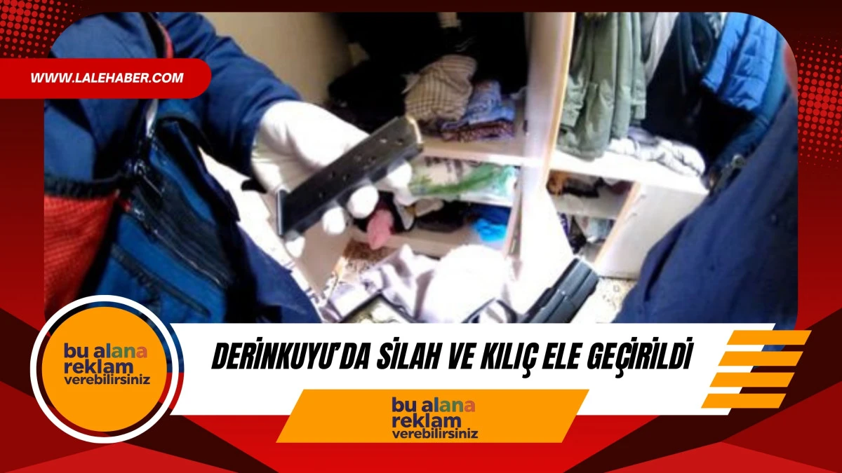 Nevşehir İl Jandarma Komutanlığı Siber Suçlarla Mücadele Şube Müdürlüğü ekiplerince Derinkuyu ilçesi Yeni Mahalle ve ilçeye bağlı Çakıllı köyünde iki adreste yapılan aramada 1 adet ruhsatsız smmıth-wesson U.S. marka 9 mm çapında tabanca, 25 adet 9 mm çapında fişek, 2 adet ruhsatsız tabanca, 1 adet kılıç ve 1 adet sallama olarak tabir edilen bıçak ele geçirildi. Jandarma ekiplerince şüpheliler M.Y. ve M.E.Ş. gözaltına alınırken şüpheliler hakkında adli işlem başlatıldığı öğrenildi.