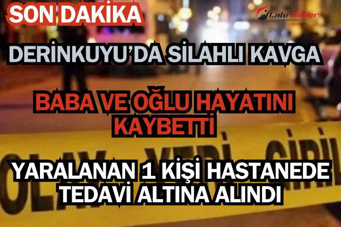 Alınan bilgilere göre, Derinkuyu’da Recep Döşeyici ile Hamza Taş ve oğlu Şahin Taş ile akrabaları Murat Taş ile önce sözlü olarak tartışmaya başladı. Tartışmanın kavgaya dönüşmesi sonrasında Recep Döşeyici Hamza Taş ve oğlu Şahin Taş ile akrabaları olan Murat Taş’ı yanında bulundurduğu silahla vurdu. Baba Hamza Taş ile oğlu Şahin Taş olay yerinde hayatını kaybederken Murat Taş ise ambulans ile Nevşehir Devlet Hastanesi’nde tedavi altına alındı. Hastanede tedavisi devam eden Murat Taş’ın da durumunun ağır olduğu öğrenildi.