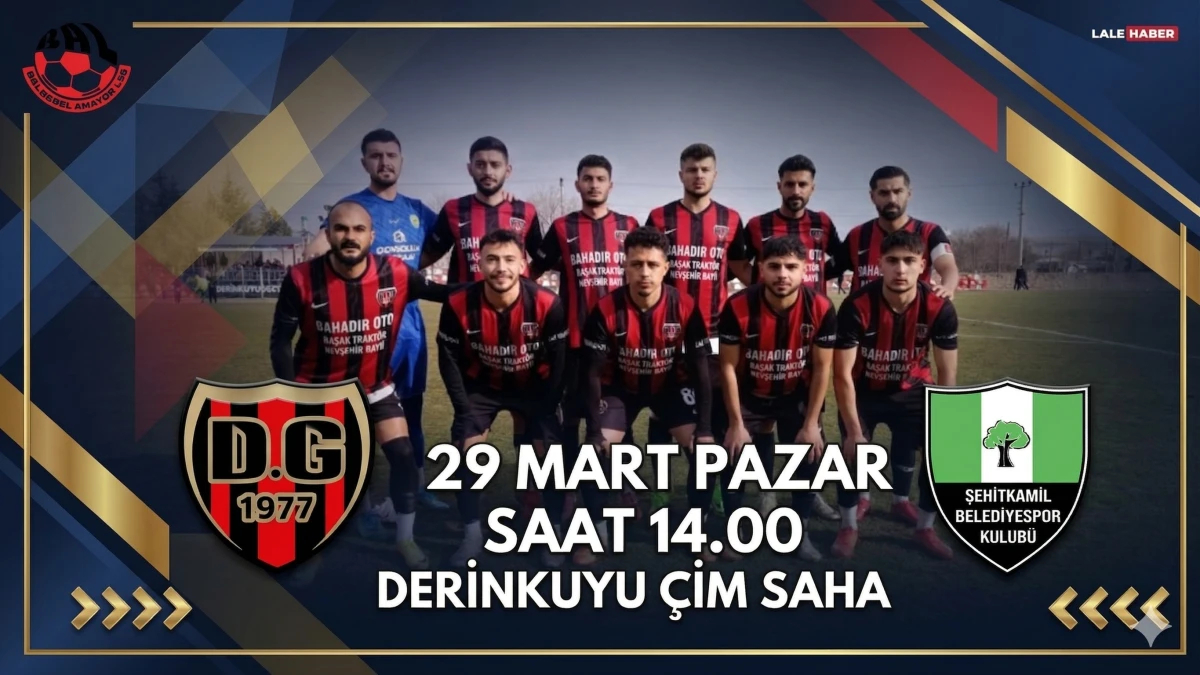 Bölgesel Amatör Lig 6.Grupta mücadele eden Derinkuyugücü 25.haftada Gaziantep temsilcisi Şehit Kamil Belediyespor’u konuk edecek. 29 Mart Pazar günü saat 14.00’te Derinkuyu çim futbol sahasında oynanacak olan mücadeleyi Umut Kılıç yönetecekken yardımcılıklarını ise Özlem Balkıç ve Adem Kıyak yapacak.