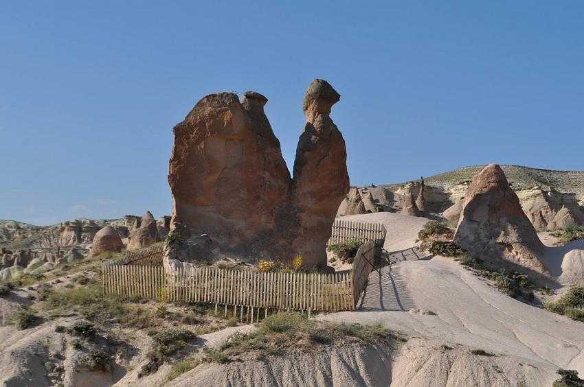 Deve silüetli peri bacasına çitli koruma ilgi çekiyor