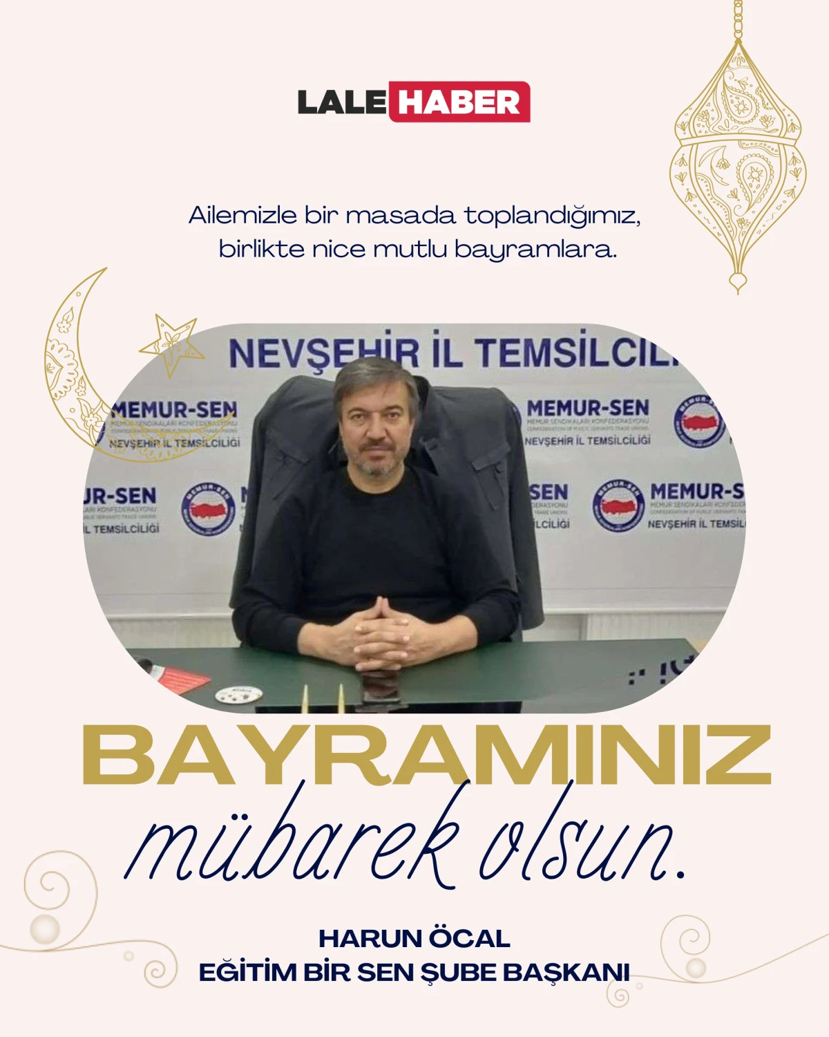 Memur-Sen İl Temsilcisi ve aynı zamanda Eğitim-Bir-Sen Nevşehir Şube Başkanı Harun Öcal, milletçe birlik ve beraberliği gösterme imkanı veren bir Ramazan Bayramını daha idrak etmenin engin mutluluğunu ve sevincini hep birlikte yaşadıklarını belirtti.