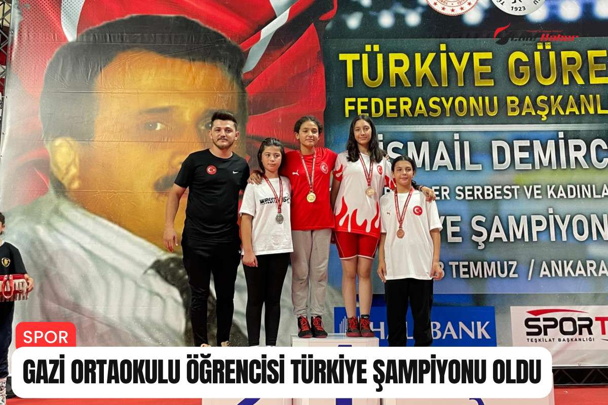 Türkiye Güreş Federasyonu tarafında Ankara’da düzenlenen U11 ve U13 Türkiye Kadınlar Güreş şampiyonasına katılan Gazi Ortaokulu öğrencisi Türkiye şampiyonu oldu.