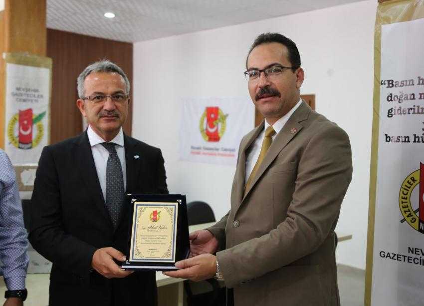 Konuşmaların ardından Nevşehir Gazeteciler Cemiyeti Başkanı Bayram Ekici, Gebze Belediye Başkanı Köşker ve Kocaeli Gazeteciler Cemiyeti Başkanı Gürol’a desteklerinden dolayı teşekkür plaketi takdim etti.