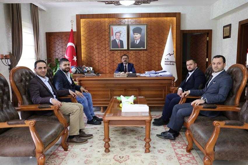 Türkiye Odalar ve Borsalar Birliği (TOBB) Nevşehir Genç Girişimciler Kurulu Başkanı Osman Vergiveren ile Yardımcısı Arif Öbekli, NTSO Başkanı ile yönetim kurulu üyeleri Nevşehir Valisi İlhami Aktaş’ı makamında ziyaret etti.
