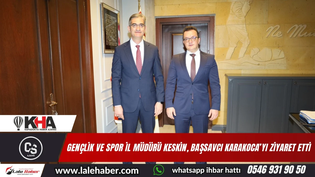 Gençlik ve Spor İl Müdürü Mustafa Hakan Keskin, Nevşehir Cumhuriyet Başsavcısı Durmuş Ali Karakoca’yı ziyaret etti.