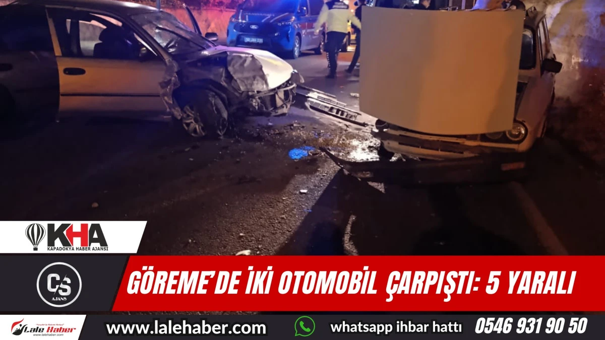 Nevşehir’in merkez ilçeye bağlı Göreme beldesinde meydana gelen trafik kazasında iki otomobil kafa kafaya çarpıştı. Kazada 5 kişi yaralandı.