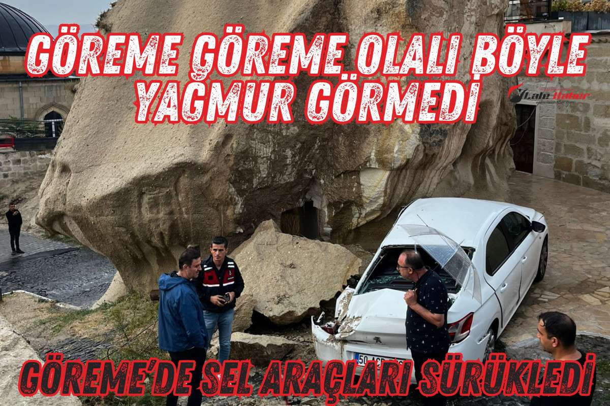 Nevşehir'in merkez ilçeye bağlı turizm beldesi Göreme'de etkili olan kuvvetli sağanak yağış sele dönüştü. Kuvvetli yağış sonrası yol sel yüzünden sular altında kalırken araçlar ilerlemekte güçlük çekti.