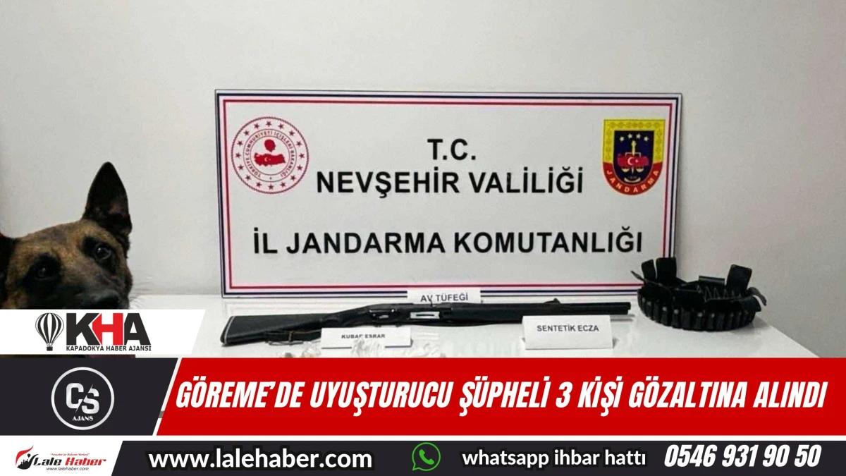 Nevşehir’in merkez ilçeye bağlı Göreme beldesinde jandarma ekiplerince uyuşturucu ile mücadele kapsamında 3 şüpheli yakalanarak gözaltına alındı.