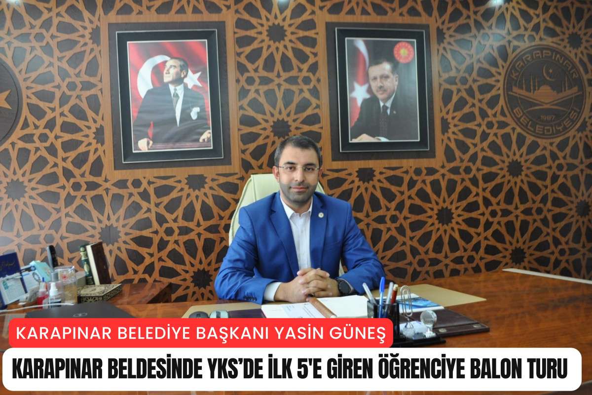 Karapınar Belediye Başkanı Yasin Güneş bugün ve yarın yapılacak olan üniversiteye giriş sınavlarında Karapınar beldesinden en yüksek puanı alan ilk 5 öğrenciye balon turu sözü verdi.