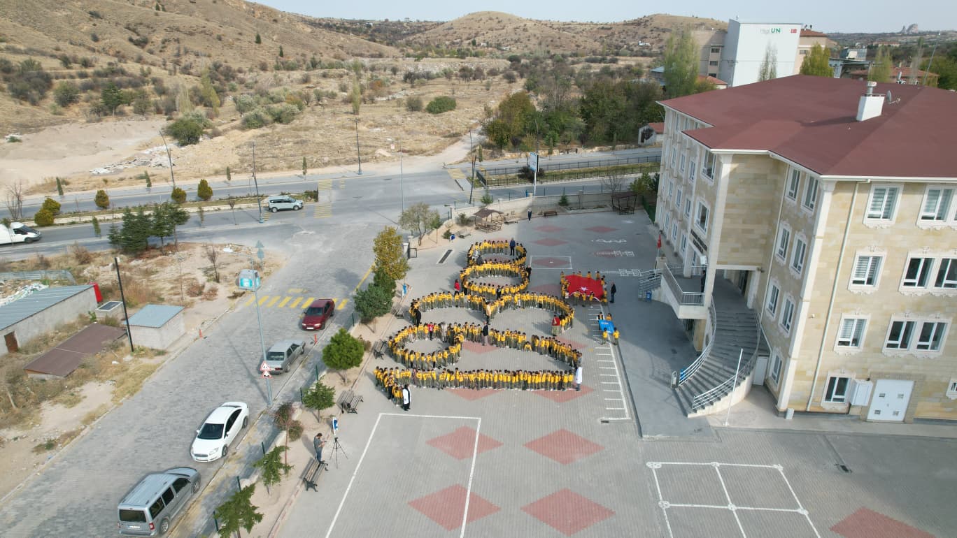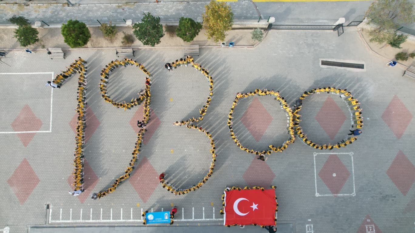 Öğrenciler, 10 Kasım Atatürk’ü Anma Günü kapsamında okul bahçesinde bir araya gelerek, büyük bir disiplin ve özveriyle “1938” yazısını oluşturdu. Hazırlanan koreografiyle Ulu Önder’e duydukları sevgi ve minneti sembolik bir şekilde ifade eden öğrenciler, duygusal anlar yaşattı.