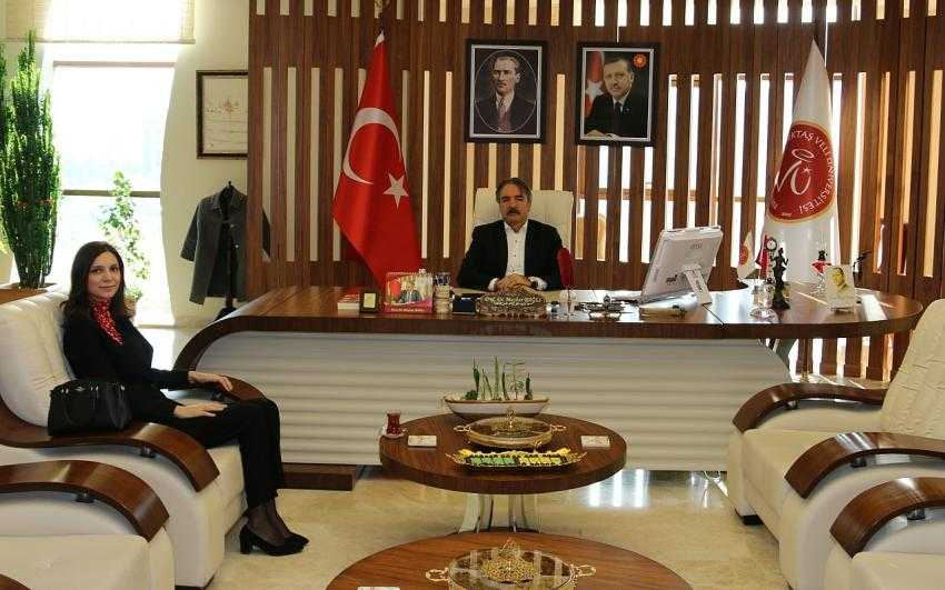 Nevşehir’in Hacıbektaş İlçe Kaymakamı Kübra Kurtoğlu, Nevşehir Hacı Bektaş Veli Üniversitesi (NEVÜ) Rektörü Prof. Dr. Mazhar Bağlı’yı ziyaret etti.