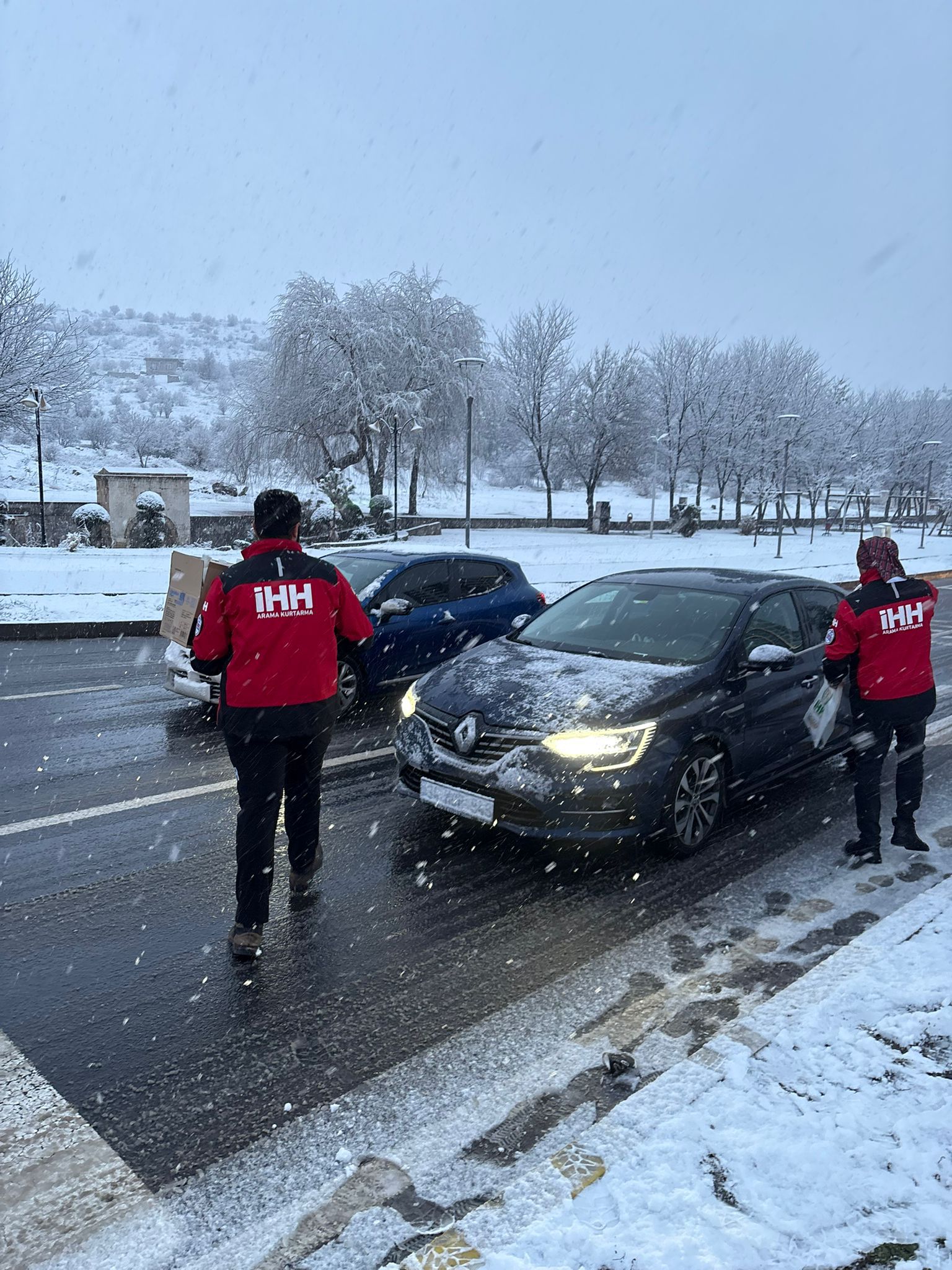 Kar yağışı nedeniyle gidecekleri yerlere iftar vaktinde henüz ulaşamamış olanlar, İHH ekiplerinin iftar kumanyaları ile karşılaştı.