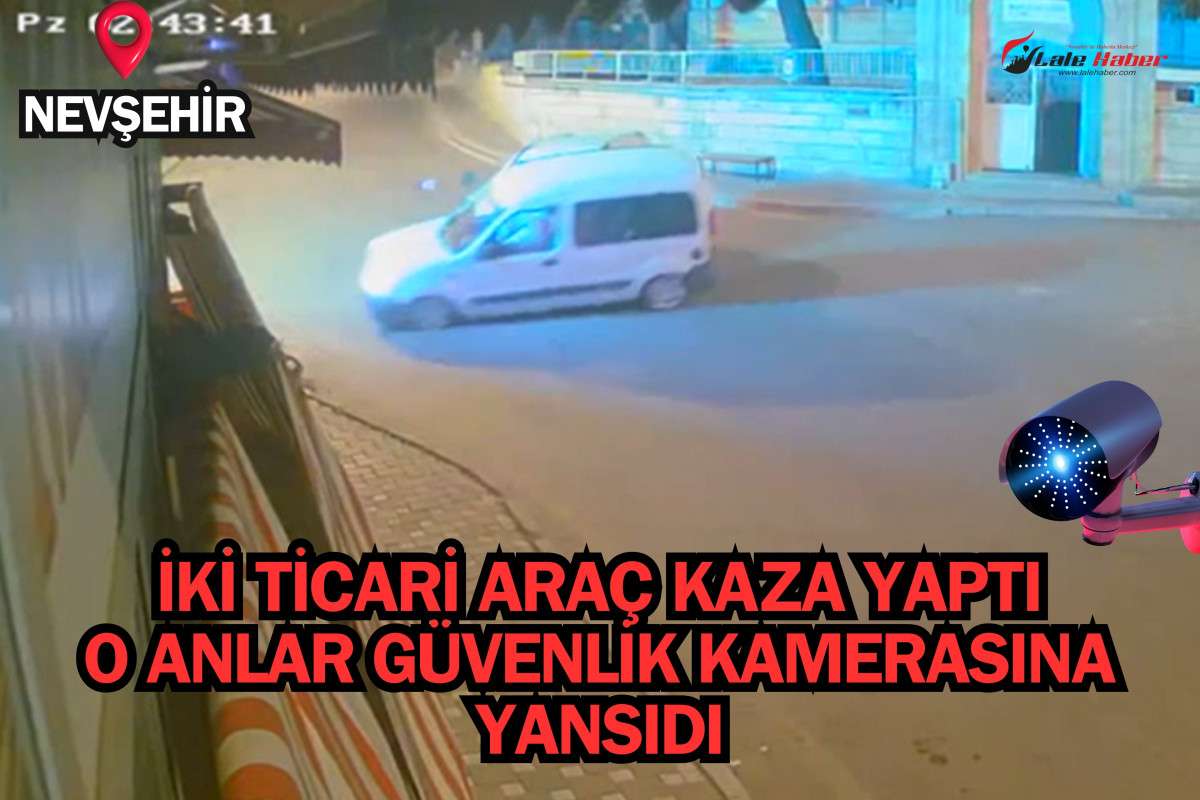 Nevşehir’de önceki gece saatlerinde Esentepe Mahallesi’nde iki ticari araç çarpışırken o anlar ise bir marketin güvenlik kamerasına yansıdı.