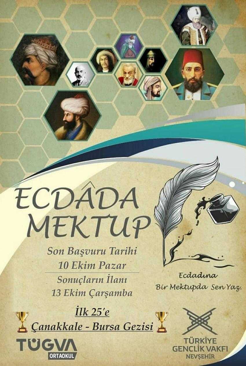 Selçuk Cingitaş'ın önderliğinde gençlerin eğitim başta olmak üzere her açıdan gelişimlerine katkı sağlamak amacıyla çalışan TÜGVA bu kez Ecdada Mektup isimli bir yarışma düzenliyor.