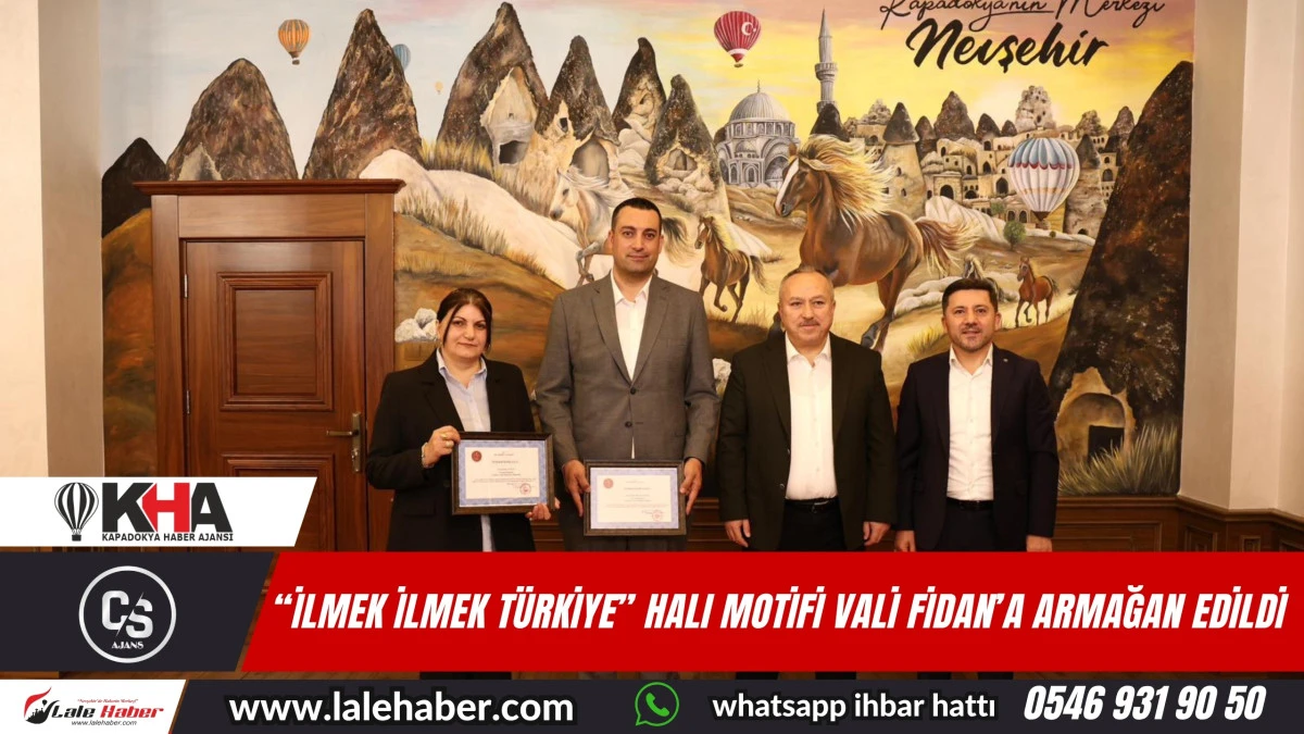 Bu anlamlı ve onurlu projeden dolayı Belediye Başkanı Arı’yı ziyaret ederek çalışmalarından dolayı kutlayan Vali Fidan, Nevşehir Belediyesi Gençlik ve Spor Hizmetleri Müdürü Hasan Hüseyin İyilikli ile Halı Atölyesi Hocası Fatma Turgut’a Belediye Başkanlığı Makamında teşekkür plaketi verdi.