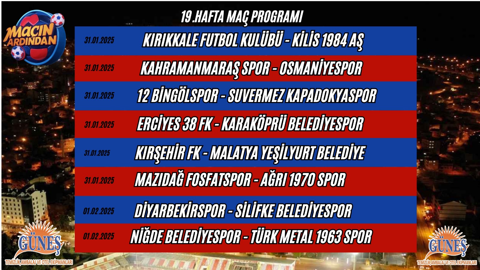 TFF 3.Lig 2.Grupta 19.hafta heyecanı 31 Ocak Cumartesi günü oynanacak olan 6 karşılaşma ile başlayacakken 1 Şubat Pazar günü ise 2 karşılaşma ile hafta kapanacak. Birbirinden zorlu mücadelelerin oynanacağı haftada Suvermez Kapadokyaspor lider 12 Bingölspor ile 31 Ocak Cumartesi günü karşılaşacak.