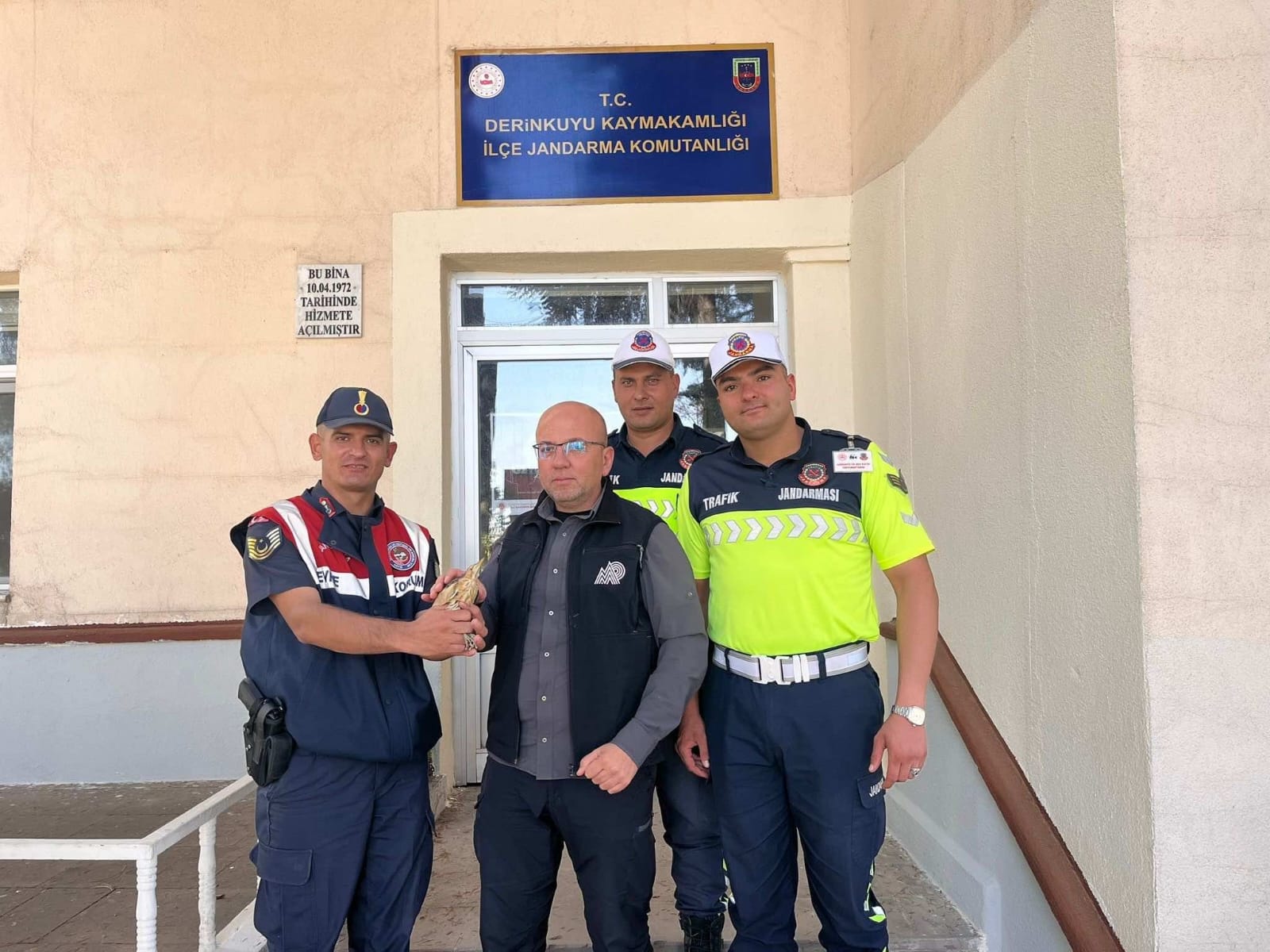 Alınan bilgilere göre, Jandarma trafik ekiplerince Derinkuyu’nun Suvermez beldesinde yapılan uygulama esnasında otluk alanda yaralı bir kuş olduğunu gördü. Bulundu otluk alandan kurtarılan yaralı kuş jandarma ekiplerince tekrar doğaya bırakılmak üzere Doğa Koruma ve Milli Parklar Şube Müdürlüğü’ne teslim edildi.