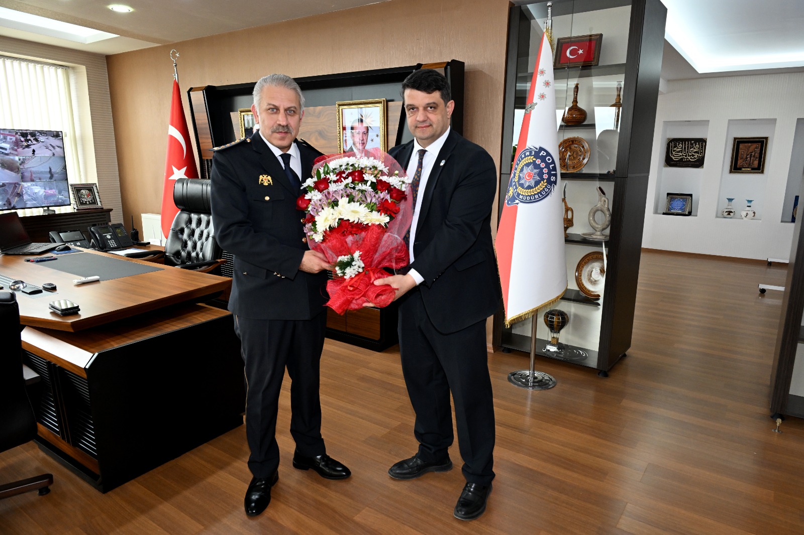 Türk Polis Teşkilatı’nın kuruluşunun 181.yıldönümü dolayısıyla Kapadokya Havalimanı Müdürü Serdar Yılmaz, Emniyet Müdürü Serkan Karaman’ı ziyaret etti.