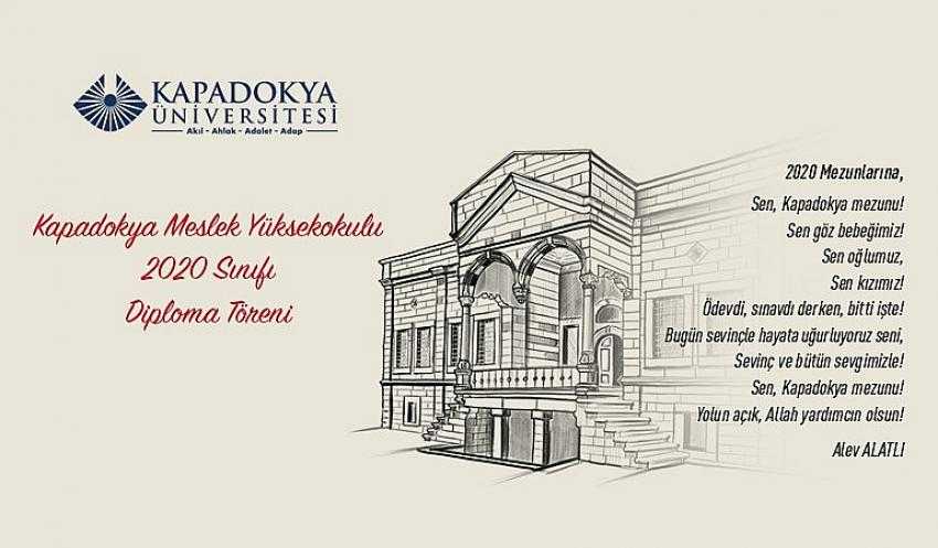 Kapadokya Meslek Yüksekokulu, koronavirüs sebebi ile önceki yıl yüz yüze yapılamayan 2020 Sınıfı Mezuniyet Törenini, internet ortamı üzerinden çevrim içi olarak yaptı.