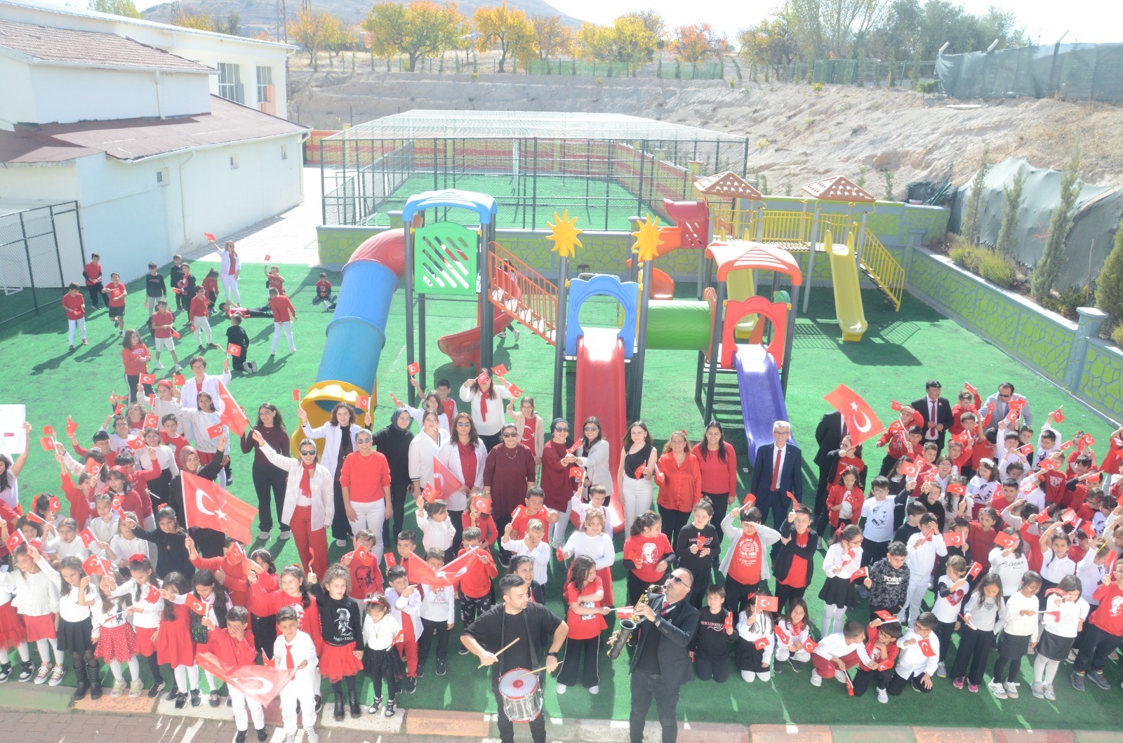 Kutlamalar kapsamında İlköğretim Okulu öğrencileri kampüs içerisinde yürüyüş düzenledi.