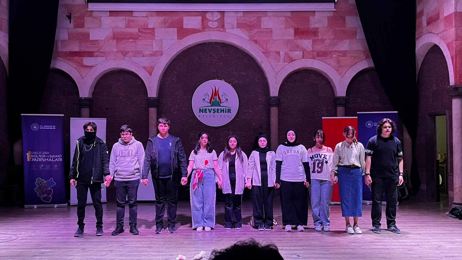 Kapadokya Kültür ve Sanat Merkezinde gerçekleştirilen ve Okulumuzdan 4 ekibin tiyatrolarını sahnelediği yarışmada sırasıyla “Omzumuzda Görünmeyen Veliler”, “Geçmiş ve Geleceğimiz”, “Sıradan Günler” ve “Şevketin İlk Günü” oyunları seyirciden büyük alkış aldı.