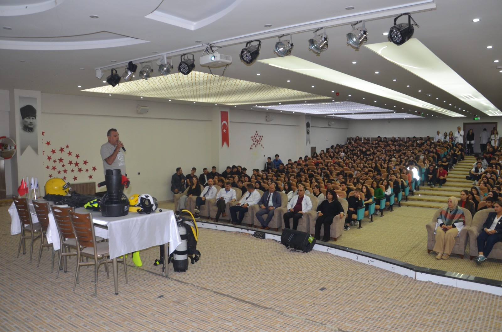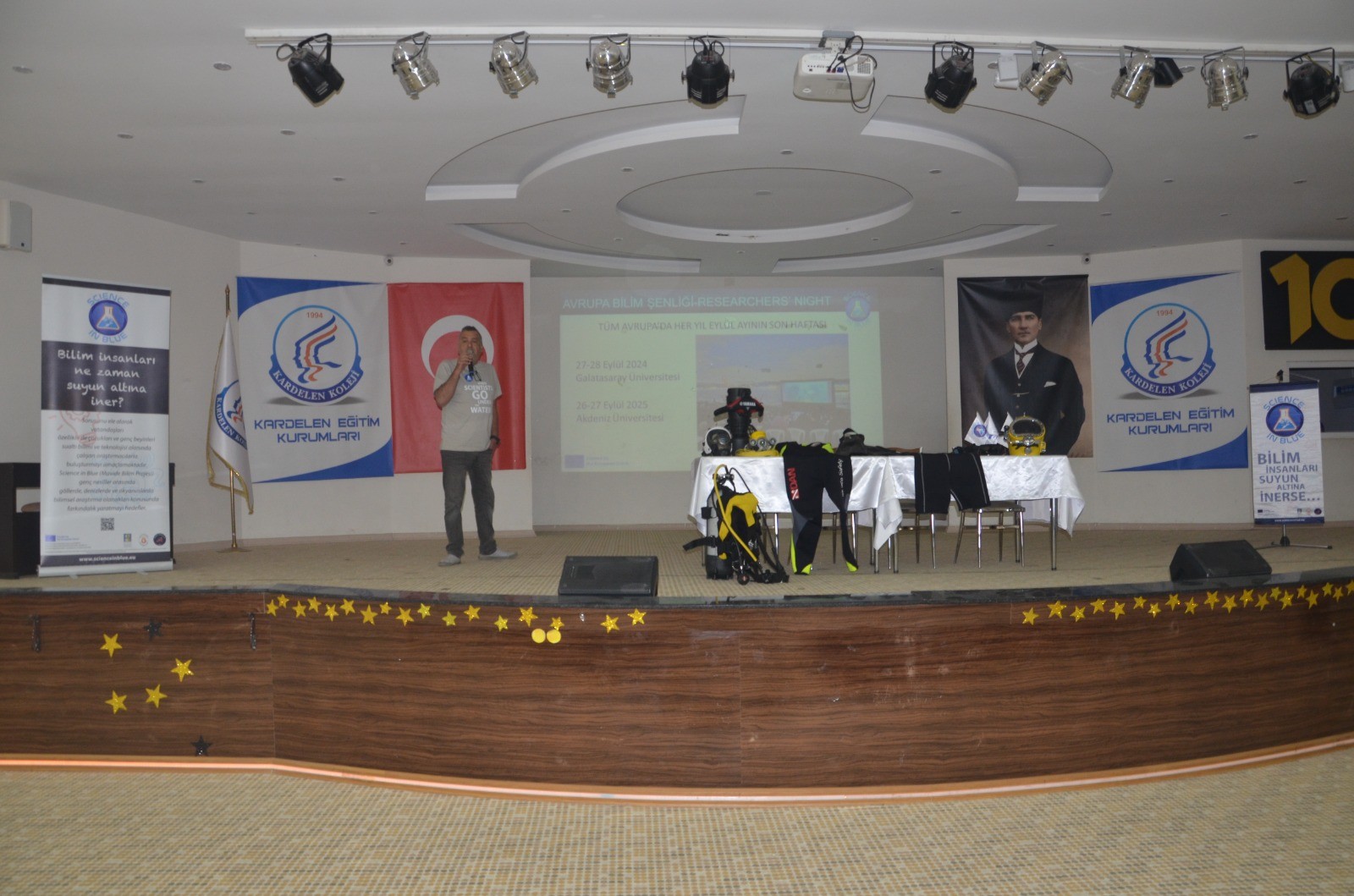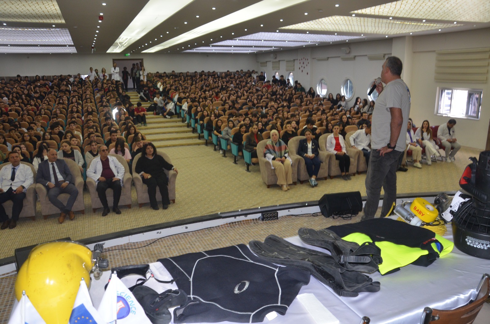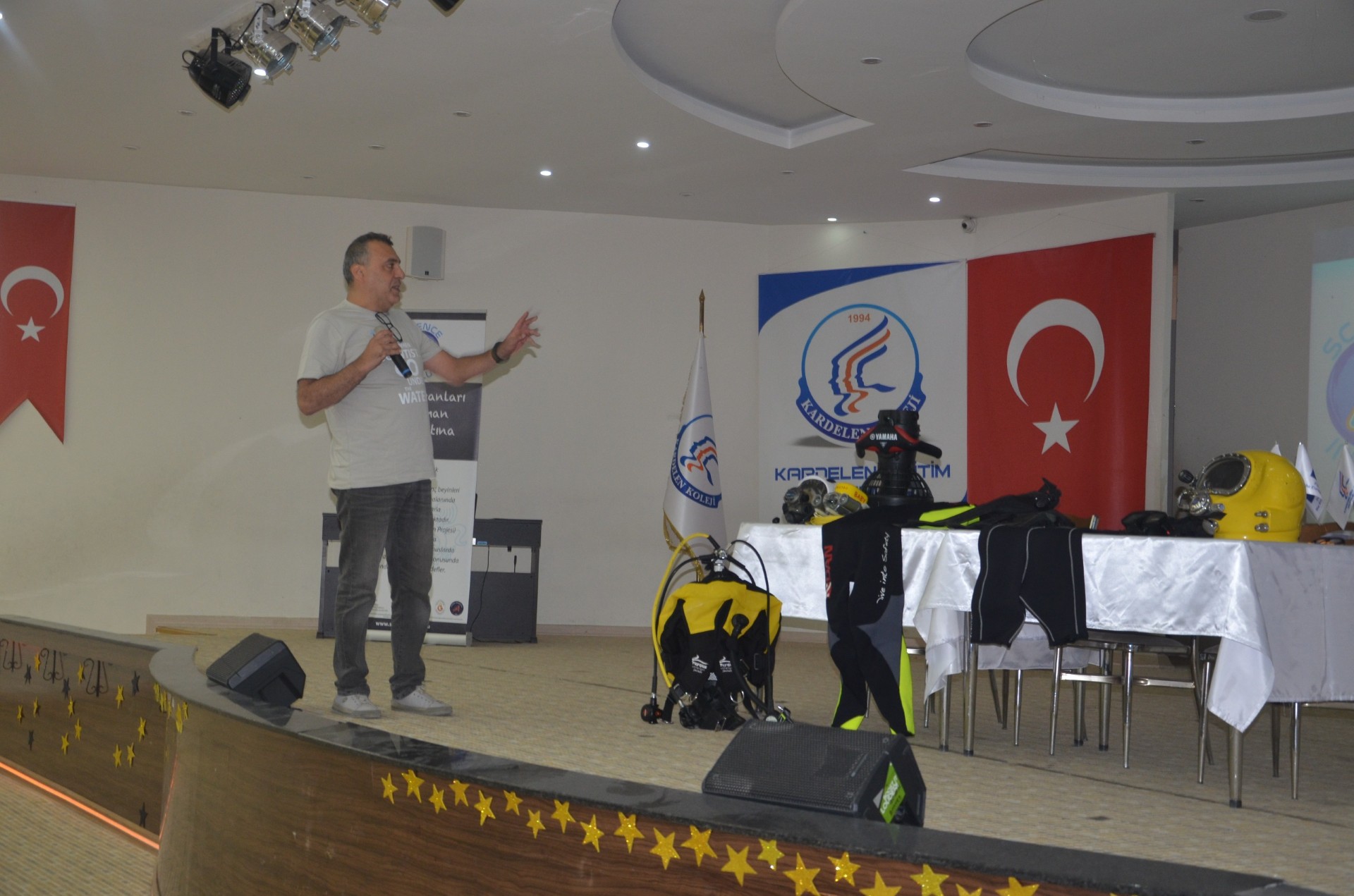 Kardelen Koleji işbirliği ile “Mavi Bilim” sloganıyla düzenlenen konferansta konuşan Özyiğit, “ Bilimsel Dalış ve Kariyer Yolları” hakkında sunum yaptı.