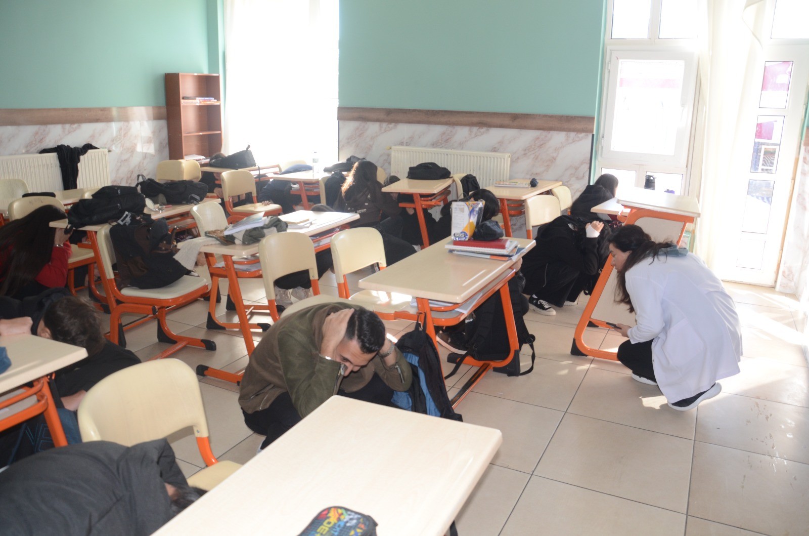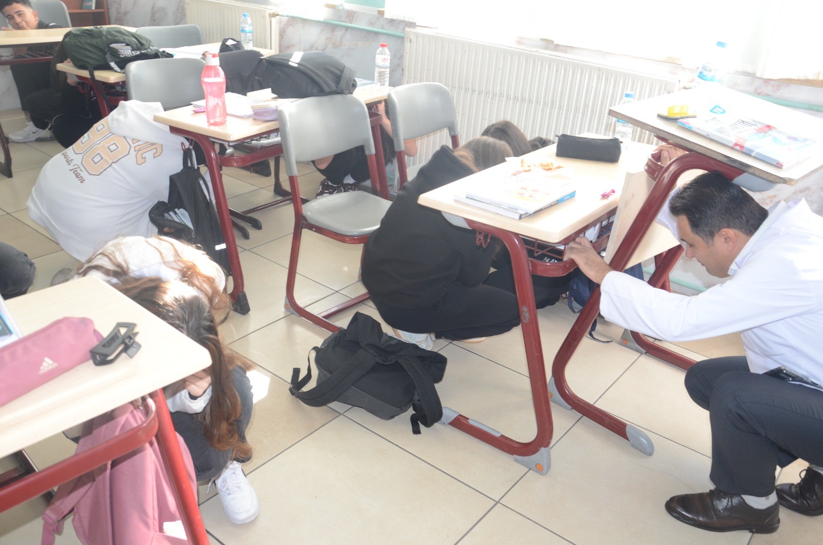 Senaryo gereği depremin sona erdiği bilgisi alınmasının ardından öğrenciler tekrar sınıflara geçti.