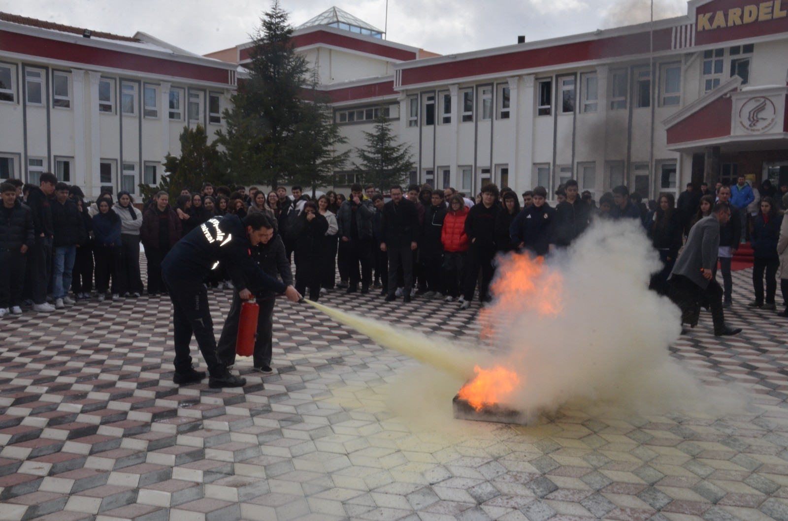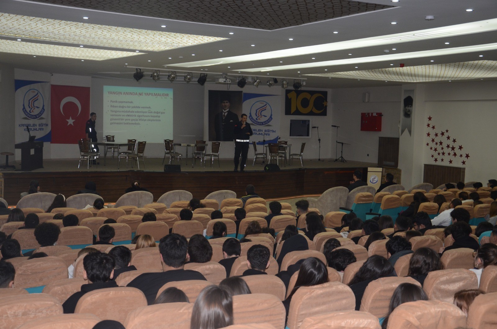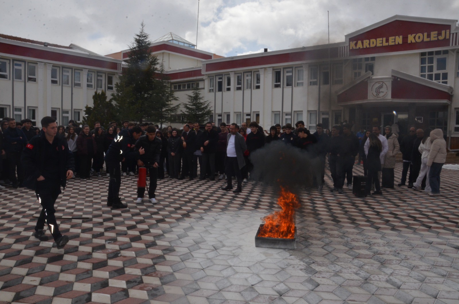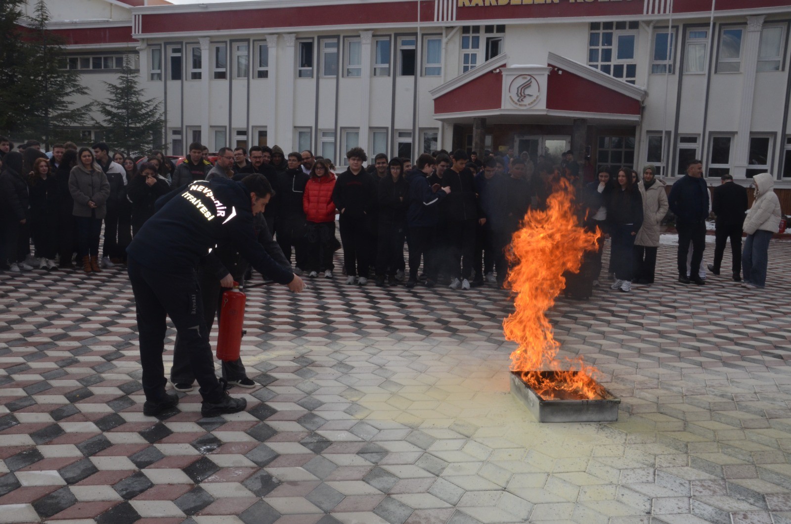Daha sonra Nevşehir Belediyesi İtfaiye Müdürlüğü yangın eğitmeni tarafından Kardelen Eğitim Kurumları konferans salonunda Fen ve Anadolu Lisesi öğrencilerine “Acil Durum ve Yangın Tatbikat Eğitimi” verildi.